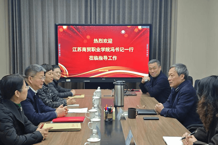 2024年1月8日下午,江蘇商貿(mào)職業(yè)學(xué)院黨委書記馮志明先生一行四人專程來到蘇商集團(tuán)本部指導(dǎo)交流工作,集團(tuán)董事長陳家俊先生熱情接待了馮書記一行。